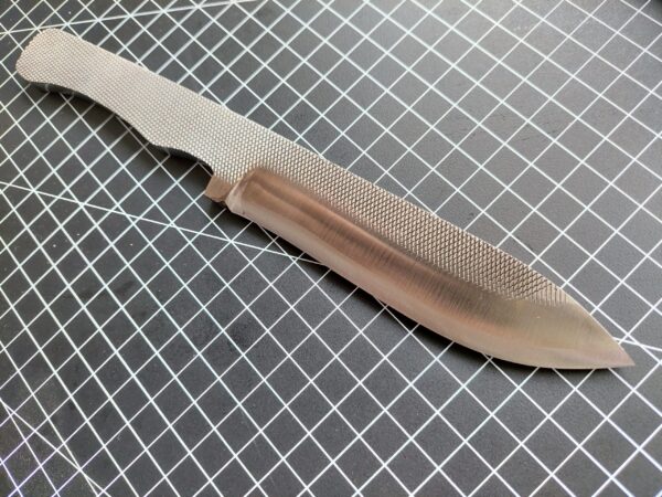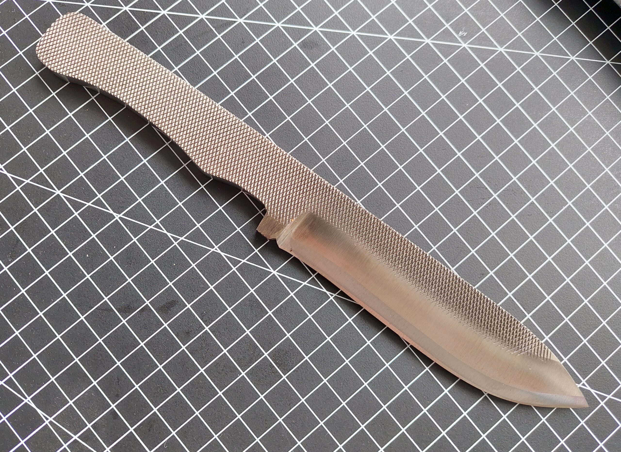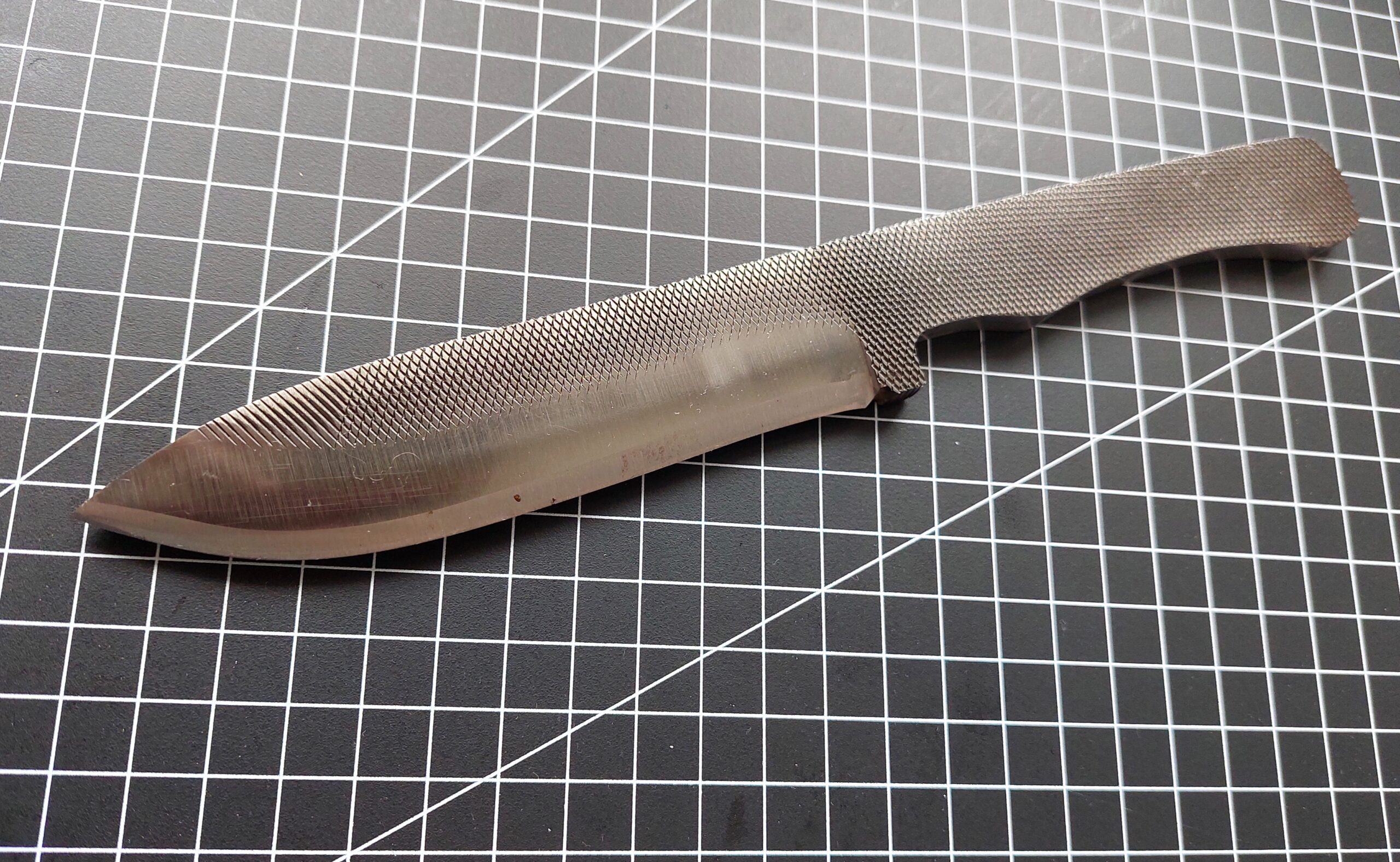 Made from a reclaimed bastard file the blade is 13cm and the handle is 10cm.